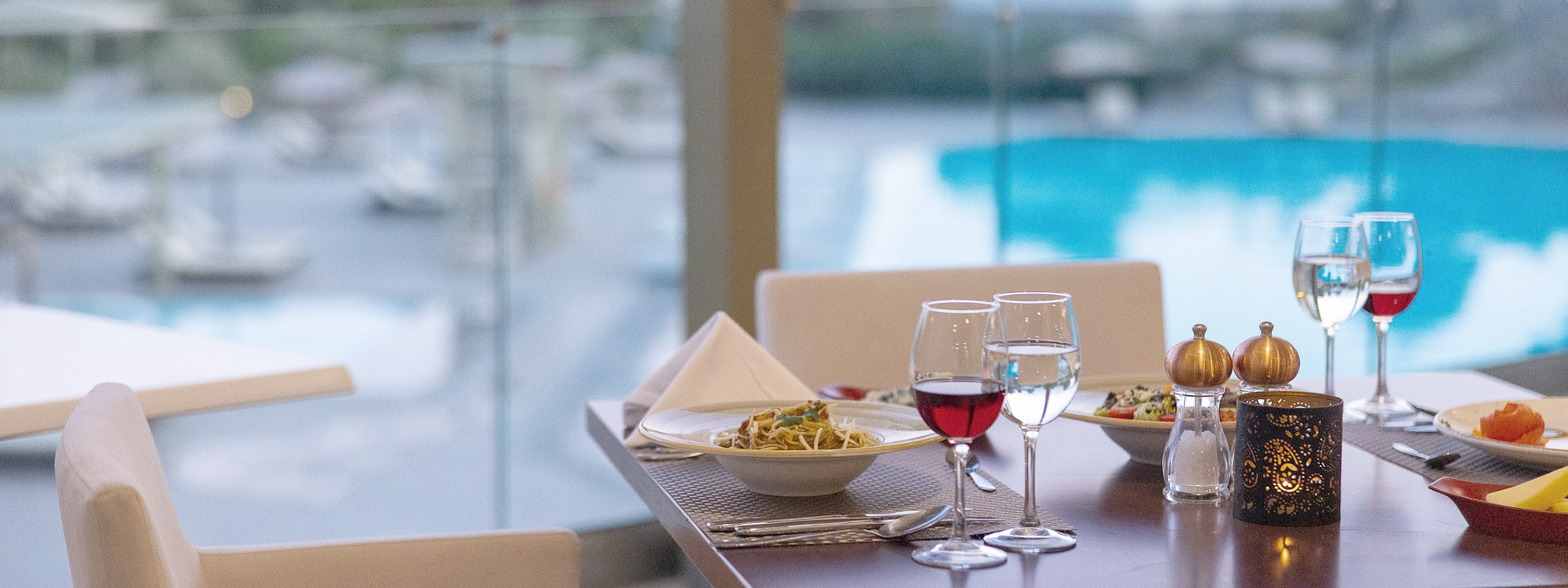 Our main restaurant welcomes guests for breakfast, lunch, and dinner with abundant buffets and daily themed evenings that celebrate variety and fresh ideas. For something lighter, the beach bar offers comfort food and easy bites by the sea, while our à la carte restaurant by the pool brings a more refined touch to your evening with Mediterranean flavors and a serene atmosphere.