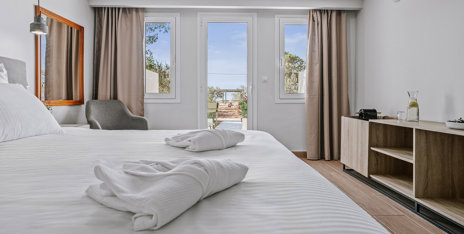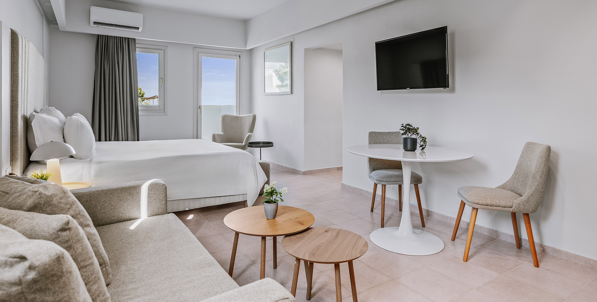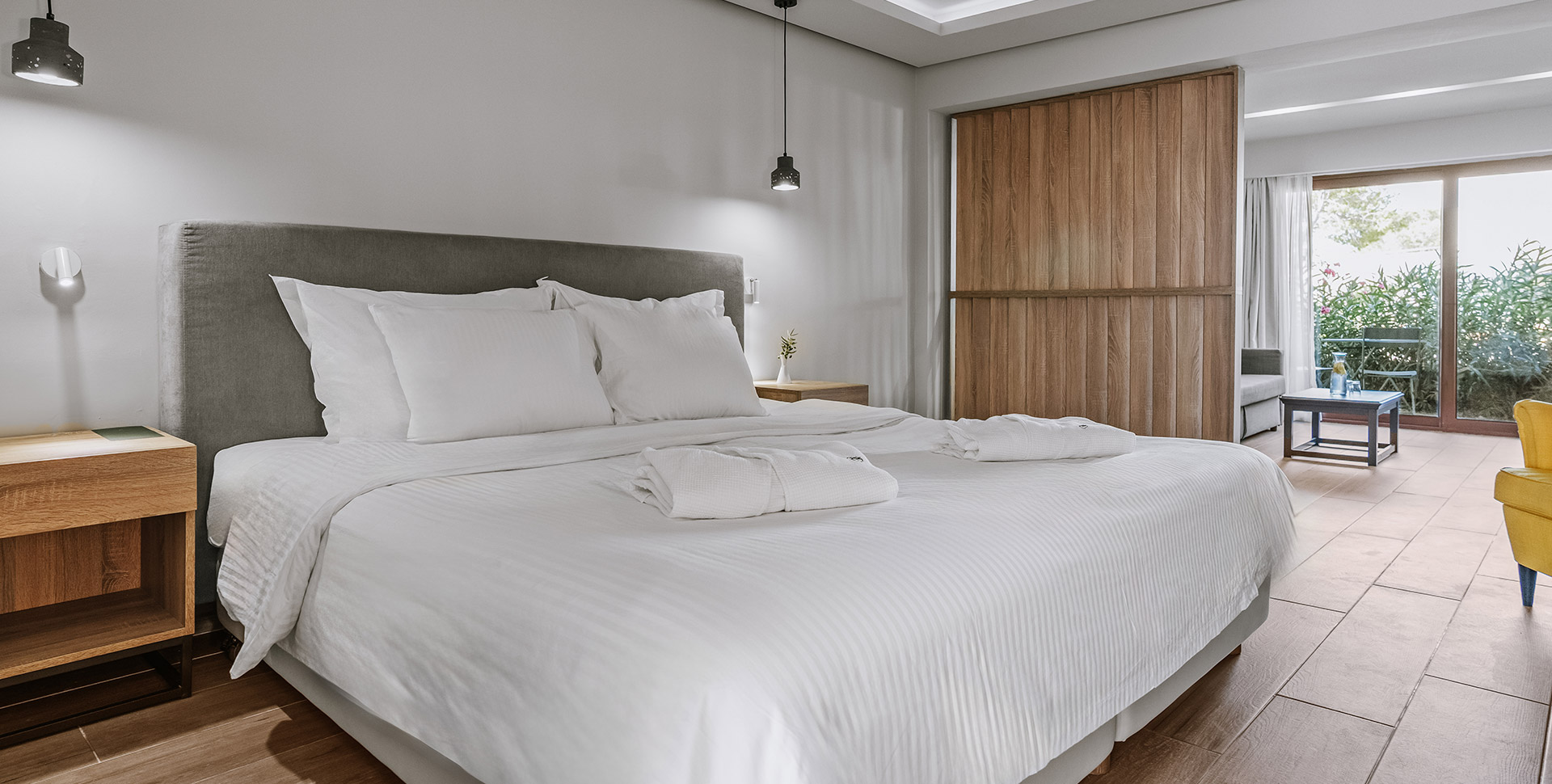 At Almyra Resort, each room is designed with intention—balancing comfort, ease, and subtle elegance. From our thoughtfully styled Standard Doubles to spacious Two-Bedroom Suites, every space reflects a clean, modern aesthetic grounded in functionality. Junior and Deluxe Suites offer quiet corners for rest and relaxation, while select rooms with kitchenettes provide added flexibility for longer stays or family travel. Whether you’re here as a couple, with family, or among friends, our range of accommodations invites you to feel at home—naturally and effortlessly.